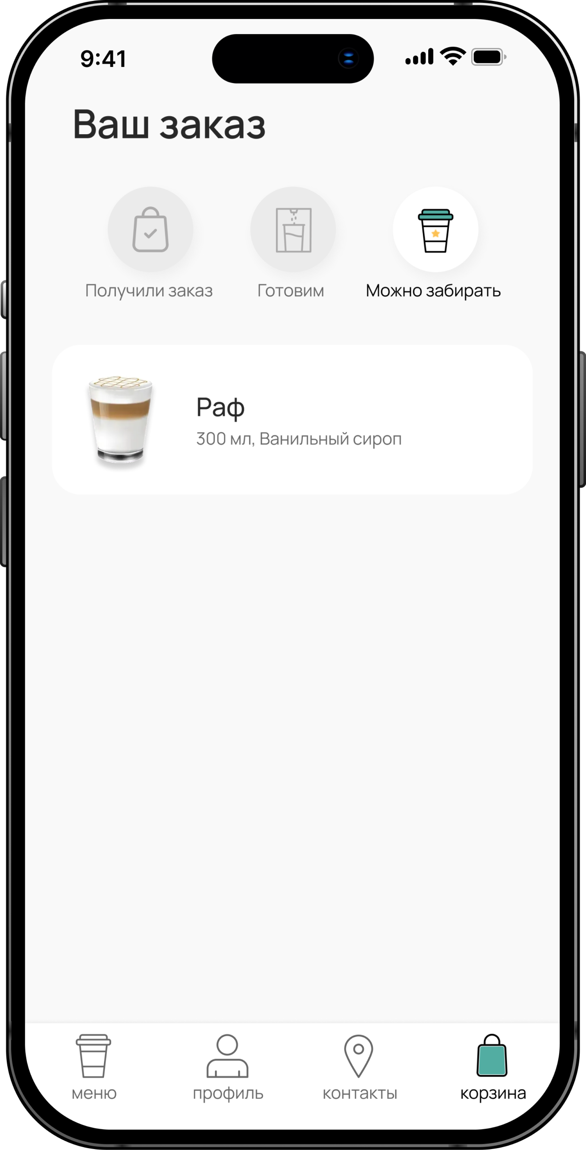 Узнай состояние готовности заказа и забери его на стойке у бариста